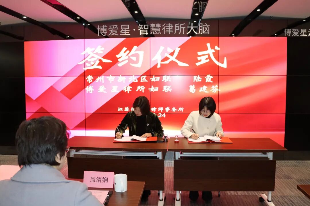 2023年2月24日上午,博爱星“未i守星”公益品牌发布会正式召开。本次发布会有幸邀请到常州市政府妇儿工委办主任周清娴,常州市新北区妇联主席陆霞,常州市妇联权益部部长、三井街道党工委副书记杭芸,常州市新北区创意产业园园区妇联主席许柯娜。我所党支部书记薛峰律师、管委会主任周栋律师、妇联主席葛建芬律师、工会主席武双云律师、妇联副主席张佳葳律师、妇联副主席杨婷律师参加了本次发布会。